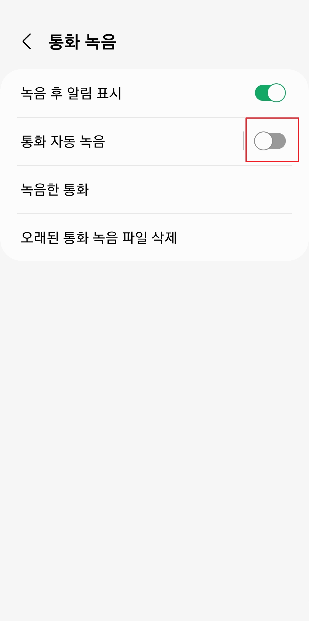 '통화 녹음' 메뉴에서 '통화 자동 녹음' 옵션을 클릭하여 회색에서 초록색으로 변경하면 통화 자동 녹음이 활성화됩니다. 이로써 모든 들어오는 및 나가는 통화가 자동으로 녹음되기 시작합니다. 녹음된 파일은 나중에 필요할 때 쉽게 접근할 수 있습니다.
