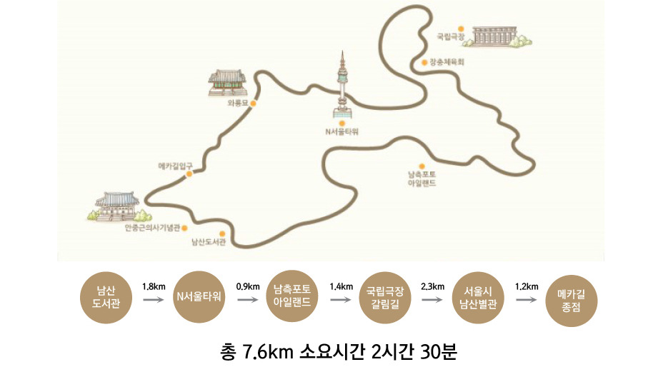- 국립극장길: 35분 소요 (경사도 중간)