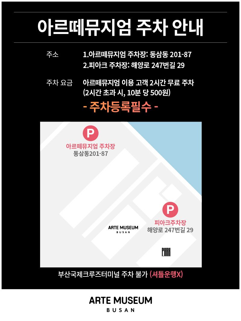 부산 아르떼뮤지엄을 방문할 때는 주차 정보를 미리 확인하고 방문하는 것이 좋습니다. 주차 요금과 주차장 이용 시간을 미리 알아두면 방문 시 불편함을 줄일 수 있습니다. 대중교통을 이용하면 주차 걱정 없이 편리하게 방문할 수 있습니다.