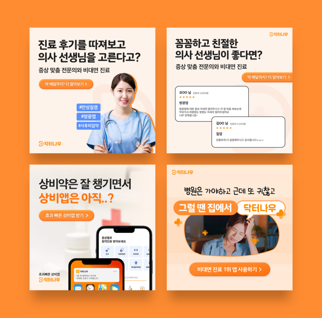 - 24/7 진료 서비스: 닥터나우는 365일 24시간 언제든지 비대면 진료를 받을 수 있는 시스템을 제공합니다. 갑자기 아플 때도 걱정 없이 진료를 받을 수 있습니다.