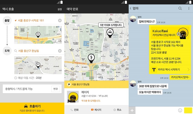 앱을 실행한 후, 홈 화면에서 택시를 호출하거나 예약할 수 있습니다. 현재 위치와 목적지를 입력하고 '택시 호출' 버튼을 눌러 택시를 예약하세요. 미리 결제 수단을 등록하면, 택시가 목적지에 도착하면 자동으로 결제됩니다. 앱 내에서 결제 정보를 입력하고 카카오페이를 통해 간편하게 결제할 수 있습니다.