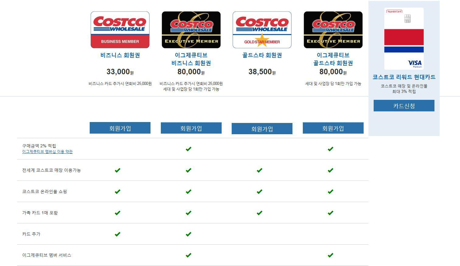 2. 코스트코 멤버십의 종류와 비용