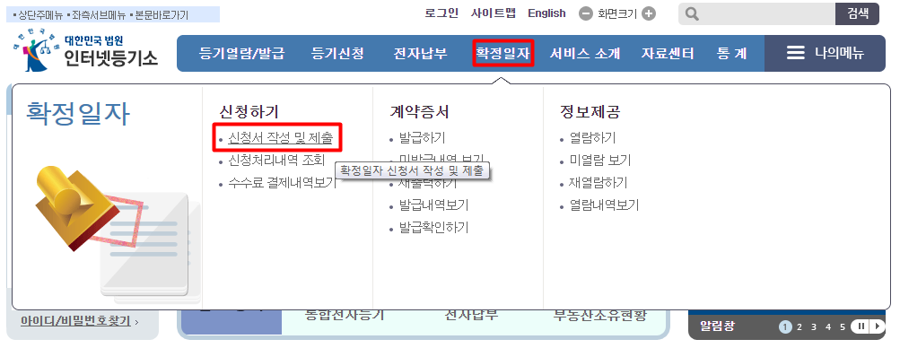 확정일자 인터넷 발급은 대법원 인터넷 등기소를 통해 진행됩니다. 온라인으로 신청하면 500원의 수수료만으로도 즉시 발급이 가능합니다.