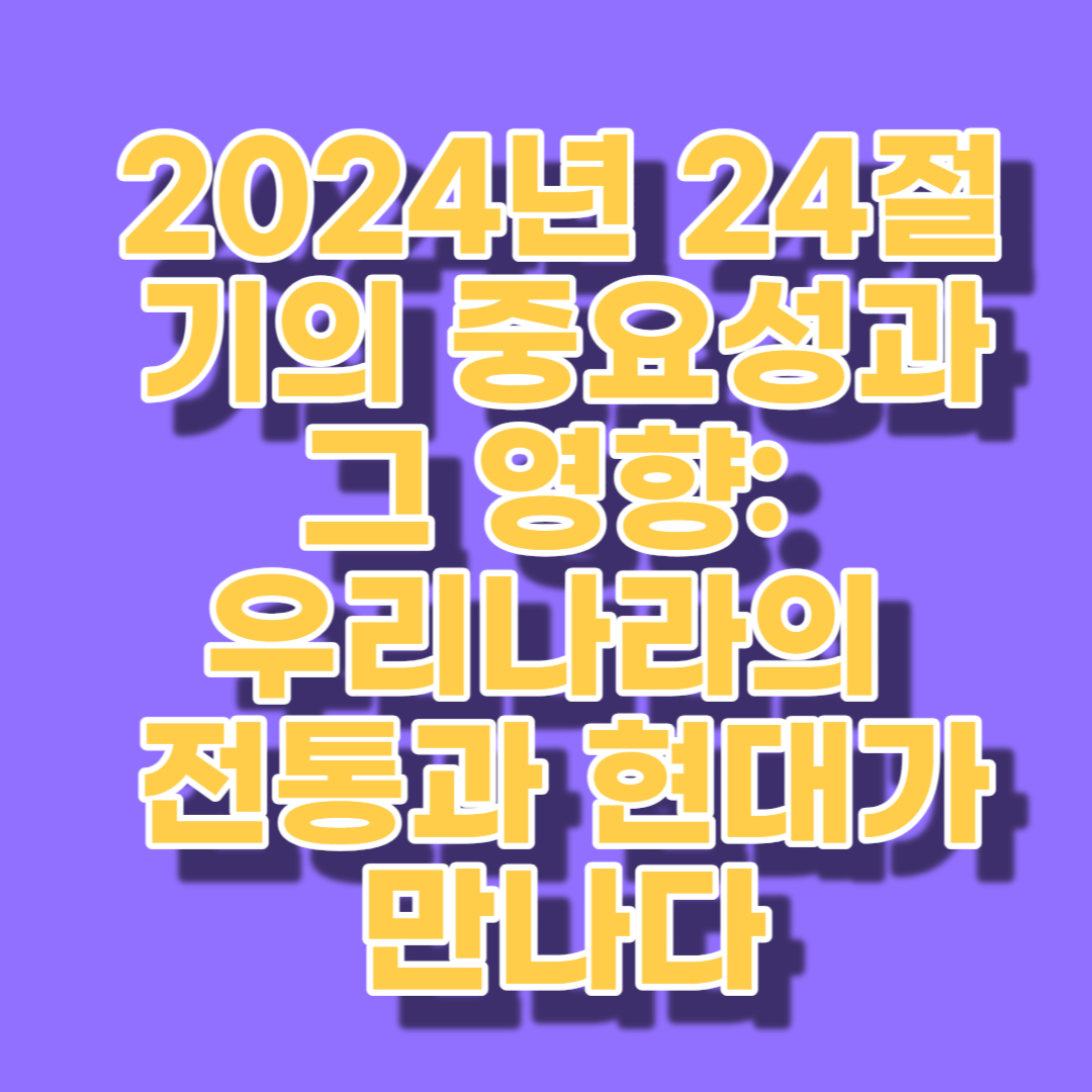 이 절기들이 우리의 생활에 어떤 영향을 미치는지 알아보는 것은 우리나라의 문화와 역사를 이해하는 데 중요한 단계입니다.