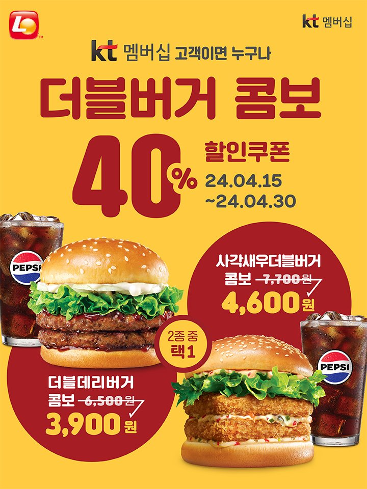 롯데리아는 매월 쿠폰을 제공하여 고객들에게 다양한 혜택을 제공하고 있습니다. 2024년 4월에는 10종의 다양한 쿠폰을 제공하며, 이를 통해 롯데리아의 다양한 메뉴를 저렴한 가격에 즐길 수 있습니다. 롯데잇츠 앱에서 쿠폰을 다운받아 매장 방문 또는 롯데잇츠 앱 픽업을 통해 이용할 수 있습니다.