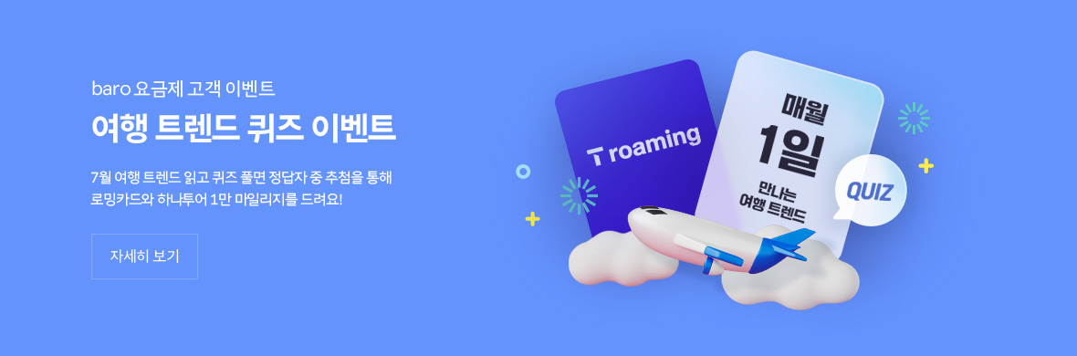 - 이벤트 기간 내에 baro 요금제 로밍 서비스를 이용하면 됩니다.