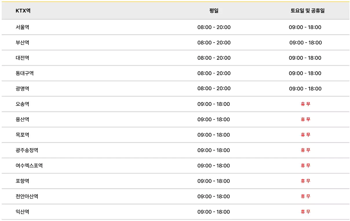 KTX 특송은 매장 영업시간 동안에만 물건을 찾을 수 있으므로 각 매장별 영업시간을 미리 확인해야 합니다. 영업시간 외에는 물품을 픽업할 수 없으므로, 픽업 시간을 정확히 계획해야 합니다.